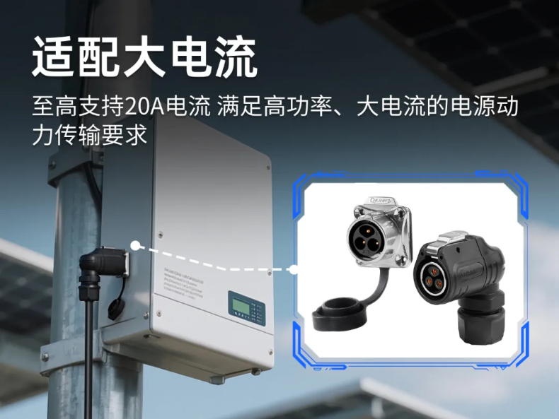 光伏發(fā)電的電能通常要高效外輸,因而工業(yè)連接器要具備承載高電流傳導的能力,以實現(xiàn)大電流傳輸,且要保持低而穩(wěn)定的接觸電阻。