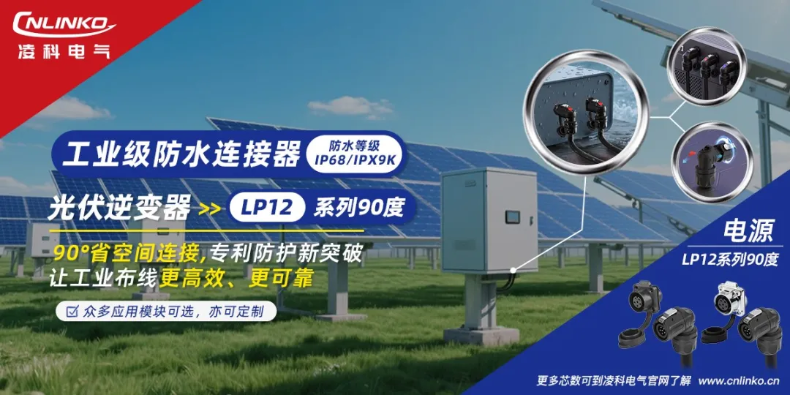 在太陽能光伏中,逆變器主要是將太陽能電池板產(chǎn)生的直流電,轉(zhuǎn)換為家庭或電網(wǎng)可用的穩(wěn)定交流電。而連接器則在電池板、逆變器電網(wǎng)/負(fù)載之間承擔(dān)電力傳輸。凌科LP12系列90°工業(yè)級(jí)連接器,以其節(jié)省安裝空間、IP68/IPX9K防水等級(jí)、接線快等特點(diǎn),正得到光伏逆變器應(yīng)用領(lǐng)域的關(guān)注和青睞。