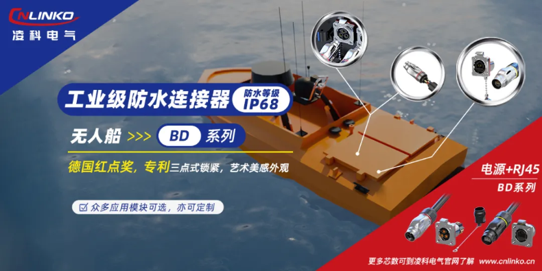 對于無人船,需要采納電源連接器來為船上動力設(shè)備提供電源輸入支持;需要信號連接器實現(xiàn)控制信號的傳導。凌科BD系列的電源連接器與RJ45信號連接器都有在無人船上使用,以實現(xiàn)上述功能。