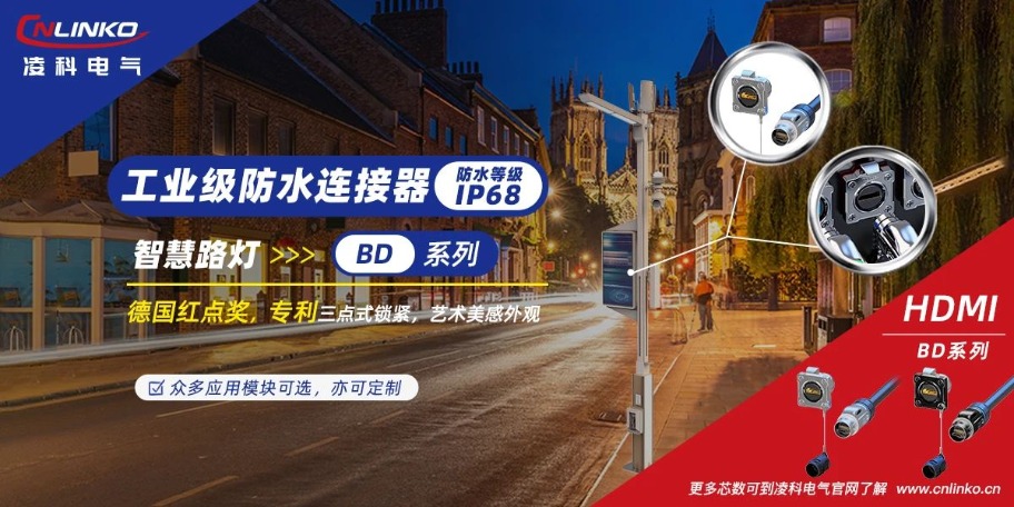 由于智慧路燈處于戶外,且屬于道路環(huán)境,因而多選用工業(yè)級(jí)HDMI連接器。凌科上述BD系列HDMI連接器,其流線型軀身和鏤空型弧線背頂?shù)脑O(shè)計(jì),極為新潮和前瞻,高端既視感很強(qiáng),同時(shí)作為一款工業(yè)級(jí)產(chǎn)品,HDMI接口6麥鍍金,更抗磨抗腐,耐久性更高。