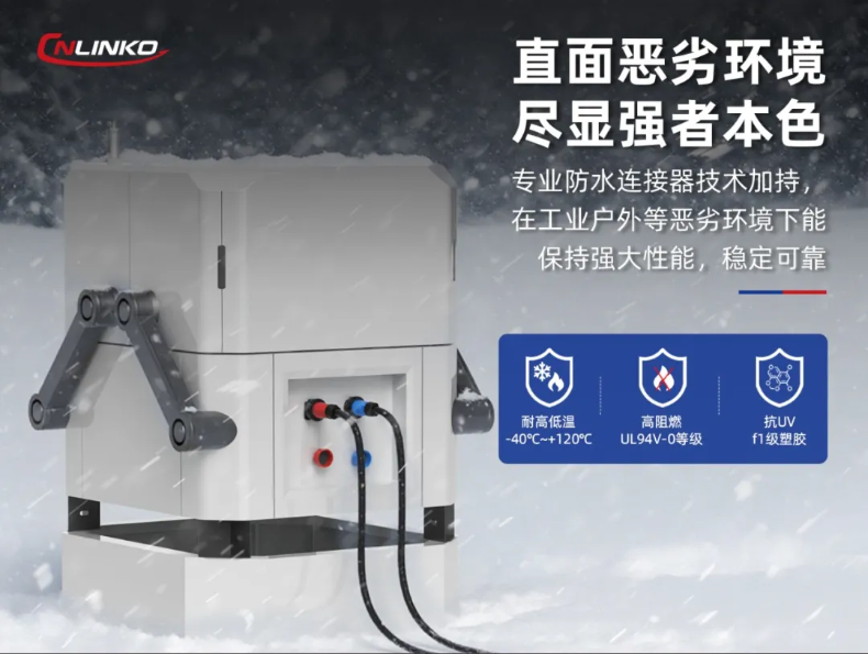 焊接作業(yè)過(guò)程中會(huì)存在焊花飛濺,同時(shí)也會(huì)釋放大量熱量造成現(xiàn)場(chǎng)局部溫度過(guò)高,這也非??简?yàn)連接器的耐高溫及防火阻燃能力。凌科DL28連接器耐環(huán)境溫度高達(dá)120℃,且阻燃等級(jí)為UL94 V-0級(jí),完全能滿足焊接設(shè)備作業(yè)過(guò)程中對(duì)連接器耐溫及防火阻燃安全要求。